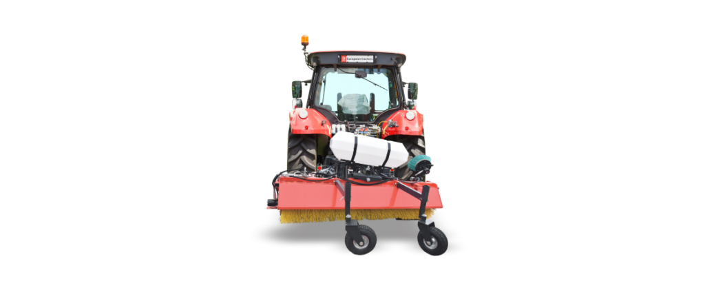 A TAG 50CH mezőgazdasági traktor IRUM homlokrakodóval és Metal-Technik utcaseprővel, az a csomag, amely biztosítja közösségi utak tisztaságát.